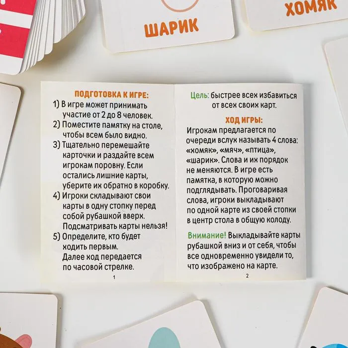 Перед вами увлекательная игра, которая поможет натренировать внимание и реакцию, а ещё весело и интересно провести время. Что нужно делать? Быть очень внимательным и следить за тем, что говорят и выкладывают остальные игроки. А самое главное — быстрее всех хлопнуть по карточкам в нужный момент. Ведь только так можно победить.