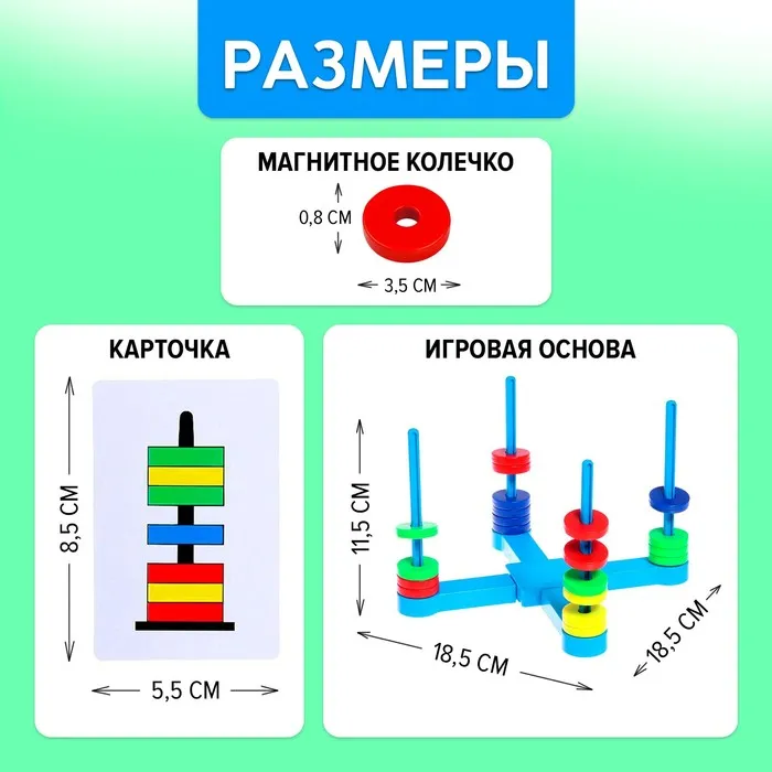 В настольной игре представлены магнитные кольца, карточки и подставка для 4 участников.