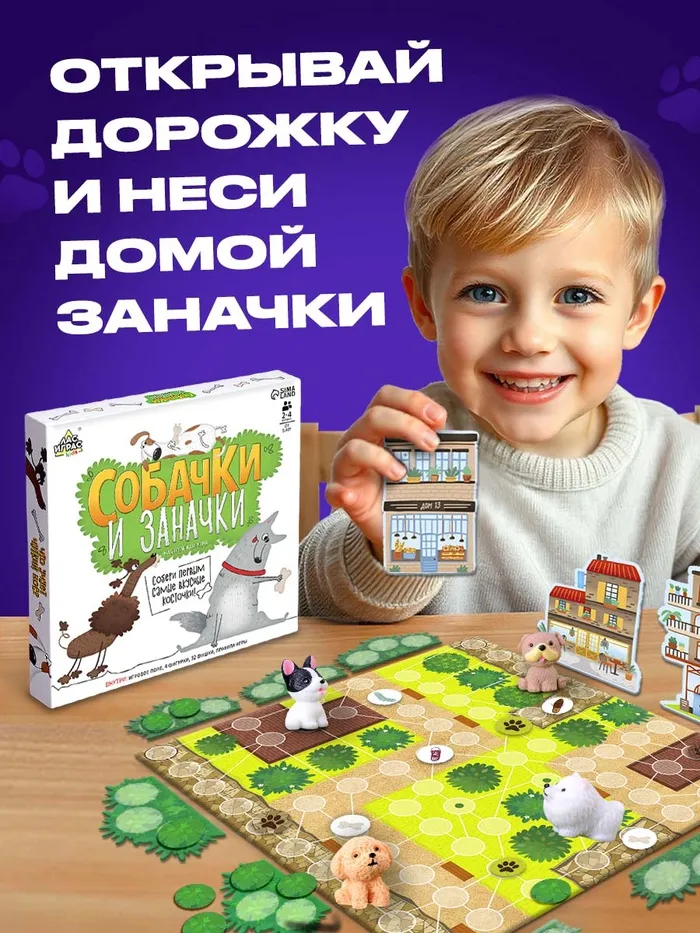 «Собачки и заначки» — настольная бродилка где вам предстоит играть за собачек, прогуливаясь по парку и собирая предметы!