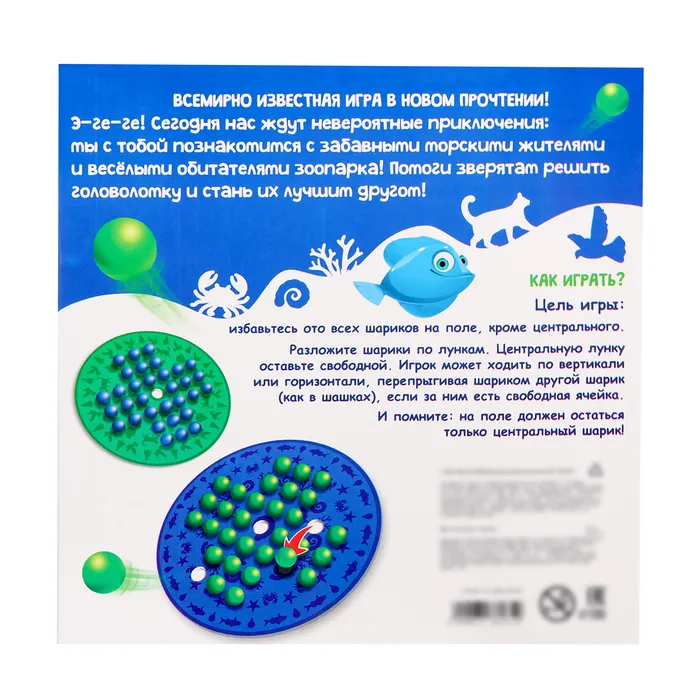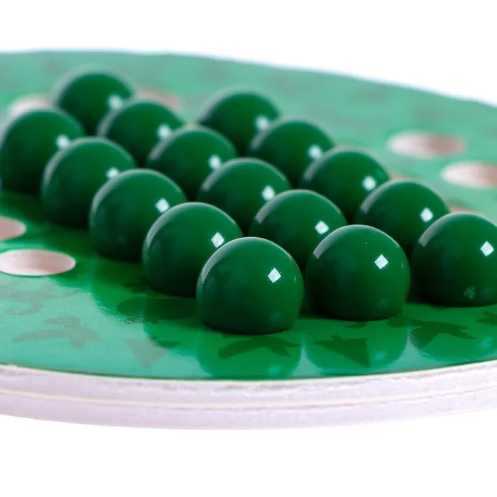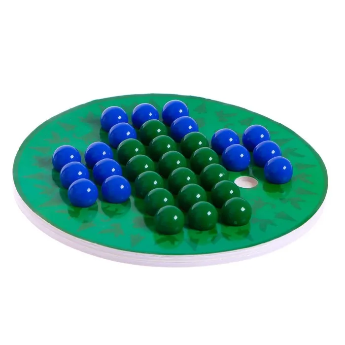 Это всемирно известная игра-головоломка для одного игрока. Расставьте все фигурки по полю, оставив лишь одну ячейку по центру пустой. Цель игры — избавиться от всех шариков, «перепрыгивая» их как в шашках. Остаться должна лишь одна фигурка в центре поля.