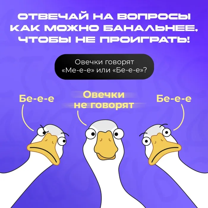 - Мягкий и забавный гусь становится символом игры. Получить его — значит оказаться слишком оригинальным, а вот избавиться от него можно, лишь дав банальные ответы.