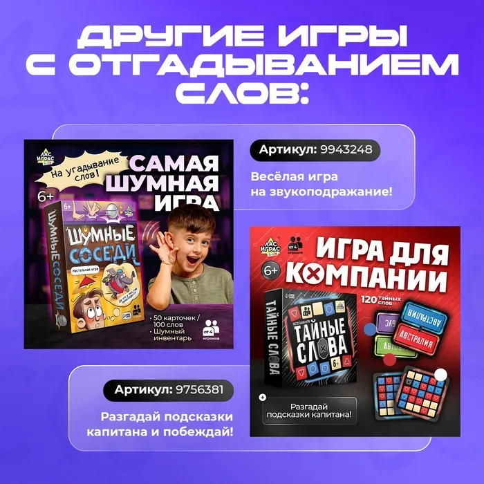 - Игра рассчитана на компанию от 4 человек, что делает её универсальным выбором для вечеринок, семейных встреч или мероприятий. Возрастной порог — от 8 лет, но взрослые тоже найдут её весёлой и захватывающей.