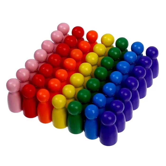 Каждая буква на фишке окрашена в соответствии с основами фонетики: гласные буквы выделены красным цветом, согласные — синим (звонкие) и зелёным (глухие). Фишки с цифрами и математическими знаками имеют белый фон.