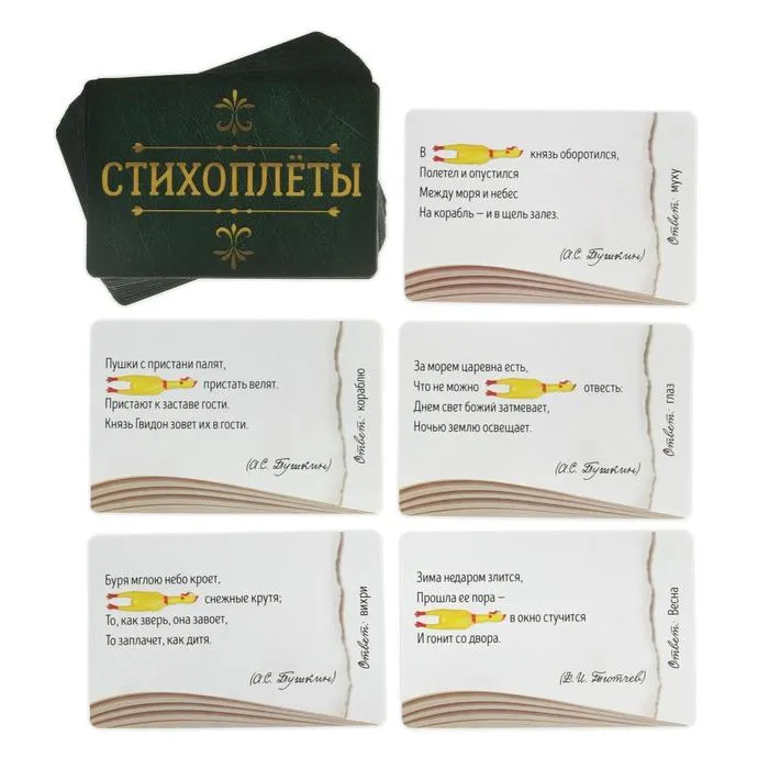 А тот, кто догадается, что пропущено в стихотворении, — забирает карточку себе. И побеждает тот, кто наберёт больше всего карточек!