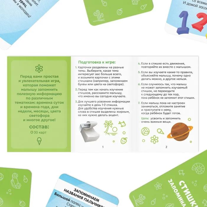 Вытягивайте карточку со стишком и зачитывайте его весело и чётко, чтобы малыш не только хорошо усваивал полученную информацию, но и с радостью занимался.