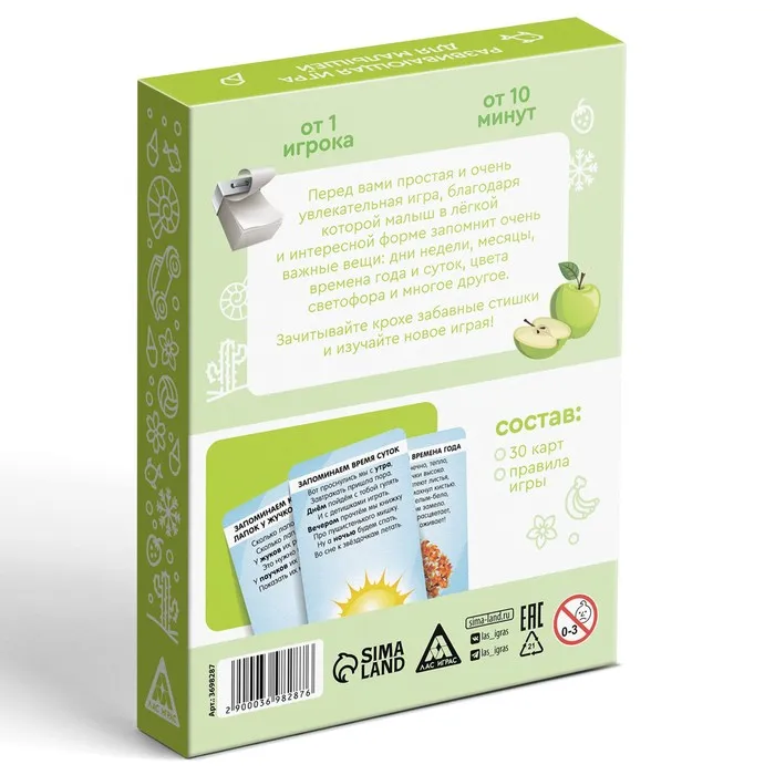 Перед вами простая увлекательная игра, благодаря которой малыш запомнит дни недели, месяцы, времена года и суток. А ещё узнает цвета светофора, правила поведения на дороге и многое другое. Зачитывайте крохе забавные стишки и изучайте новое играя!