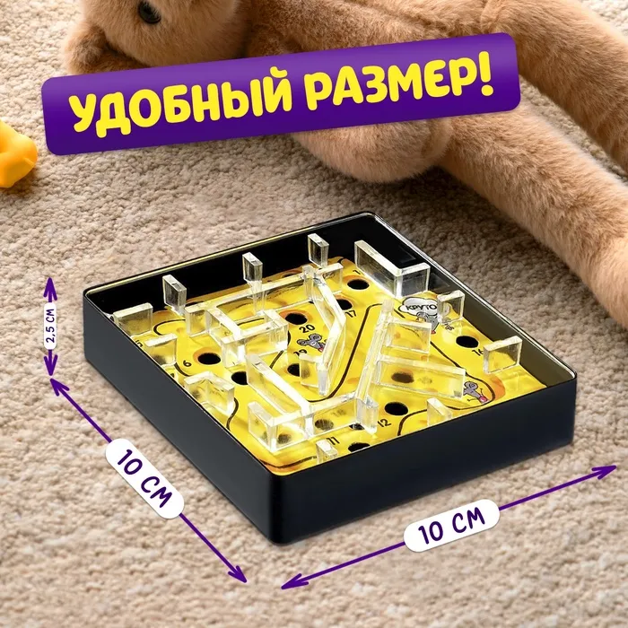 С настольной игрой «Сырный лабиринт» ребёнок прокачает логическое мышление, координацию движений и ловкость. Ведь пройти сырный лабиринт не так уж просто, и игроку понадобится тщательно продумывать траекторию движения шарика!