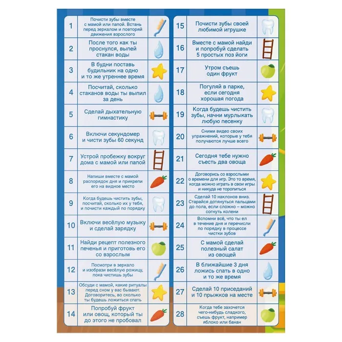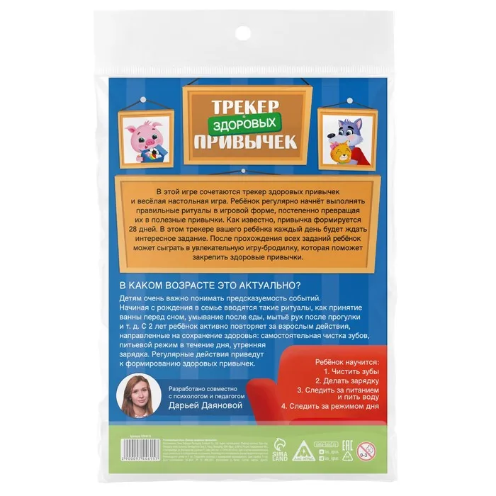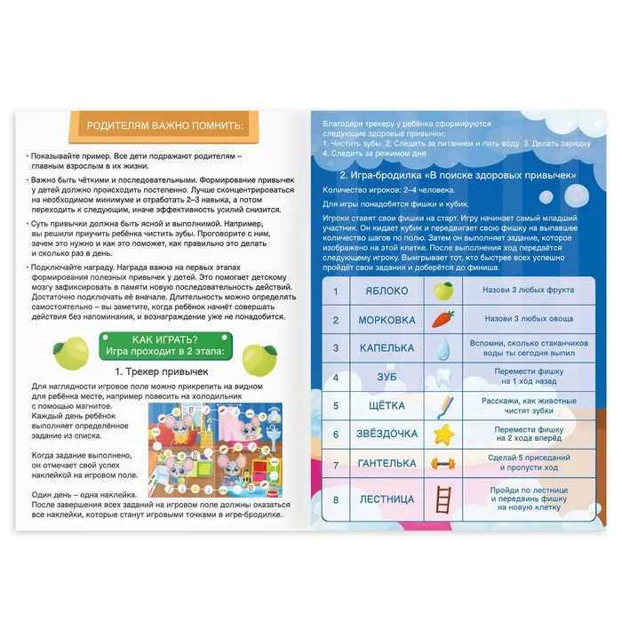 Игра, в которой сочетаются трекер здоровых привычек и весёлая игра-бродилка. Ребёнок регулярно начнёт выполнять правильные ритуалы в игровой форме, постепенно превращая их в полезные привычки. Как известно, привычка формируется 28 дней.