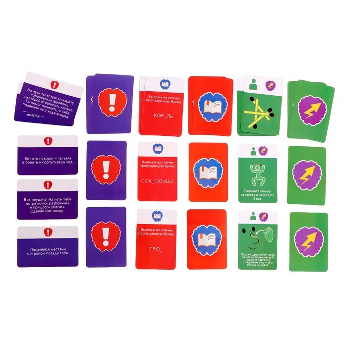 - Помните, что карточку с заданием нужно открывать только в том случае, если участник встал на ячейку после броска кубика. Если игрок попал на ячейку с символом в результате выполнения задания, карточку он не берёт.