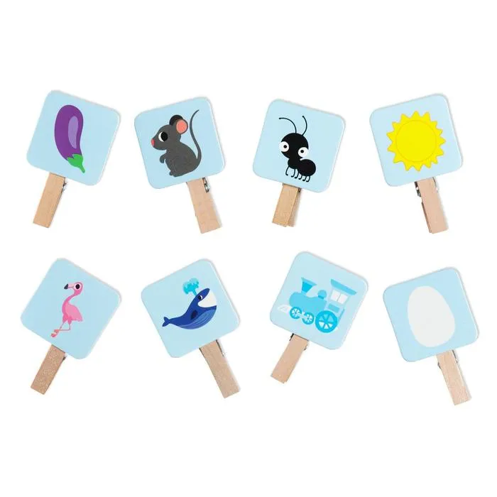 Для начала поместите игровое поле перед ребёнком. Прищепки расположите рядом с полем. Главная задача — правильно разместить все 12 прищепок.