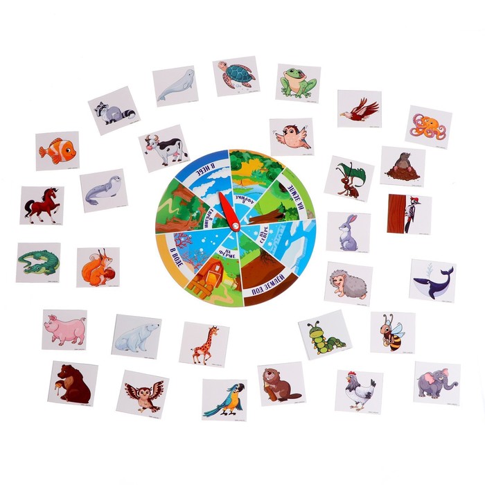 Сортируйте животных в зависимости от среды и места обитания. Помимо этого вы можете сыграть с малышом в «Найди лишнее».