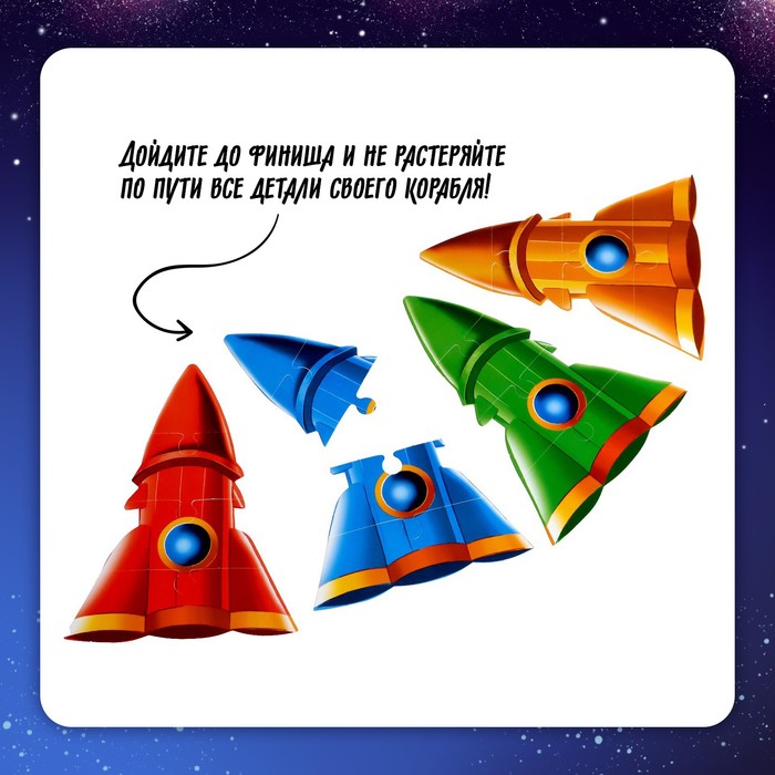 • У каждого юного космонавта в запасе есть 4 части его корабля. Чем больше карт корабля сохранит игрок к финишу, тем выше его шансы на победу!