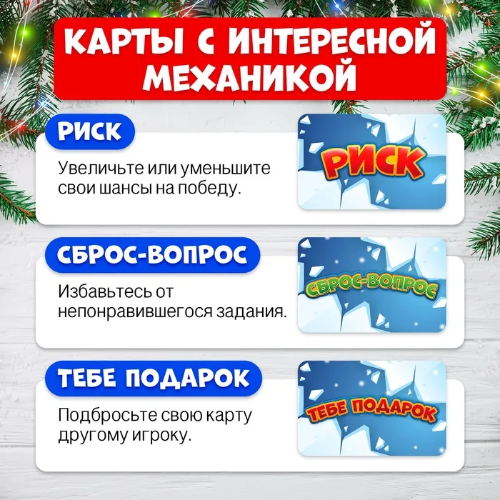 Разложите игровое поле, поставьте фишки на клетку «Старт». Первый из игроков переворачивает таймер с шариками. За это время, а это ровно 5 секунд, нужно дать ответ на вопрос или выполнить весёлое задание с карточки. Победит тот, кто первым дойдёт до финиша. Весёлой игры!
