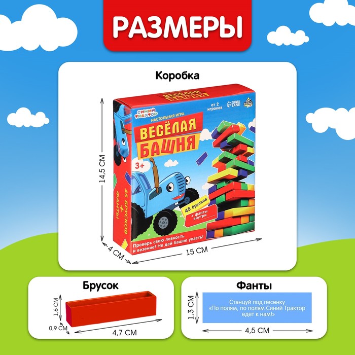 Настольная игра «Весёлая башня. Синий трактор», от 2 игроков, 3+ — Характеристики