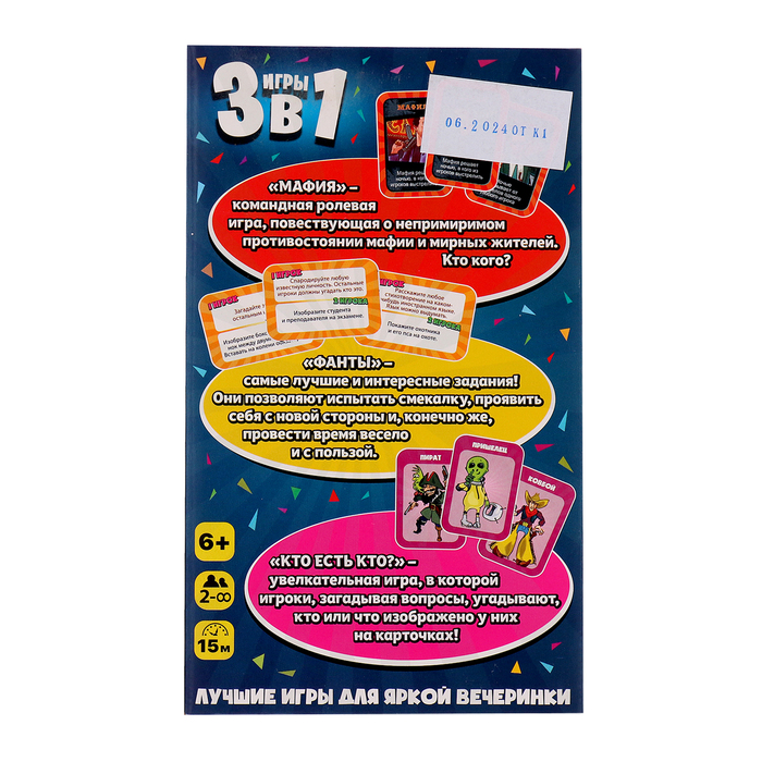 Настольная игра «Весёлая вечеринка 3 в 1», 2 игрока, 6+, МИКС — Характеристики