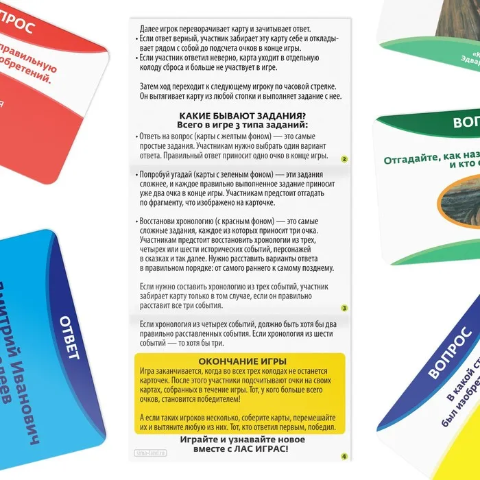 Что появилось раньше: Эрмитаж или Кунсткамера? Кто изобрёл телефон? На эти и другие вопросы вам предстоит ответить в увлекательной игре. Скорее собирайте друзей или членов семьи, чтобы сразиться в настоящей битве интеллектов!