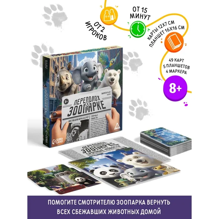 Настольная игра на счёт «Переполох в зоопарке», 49 карт, 8+