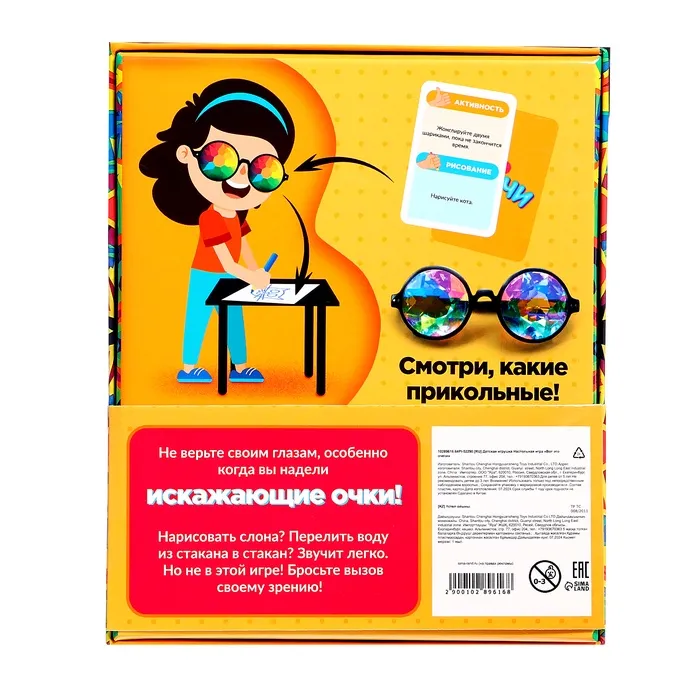 Настольная игра «Вот это очечи» — это прекрасный выбор для семейного отдыха и праздников. Она подойдёт для детей от 5 лет и взрослых, а минимальное количество участников — всего два человека, так что можно играть даже в небольшой компании. Весёлые задания, активные действия и искажающие очки сделают игру незабываемой!