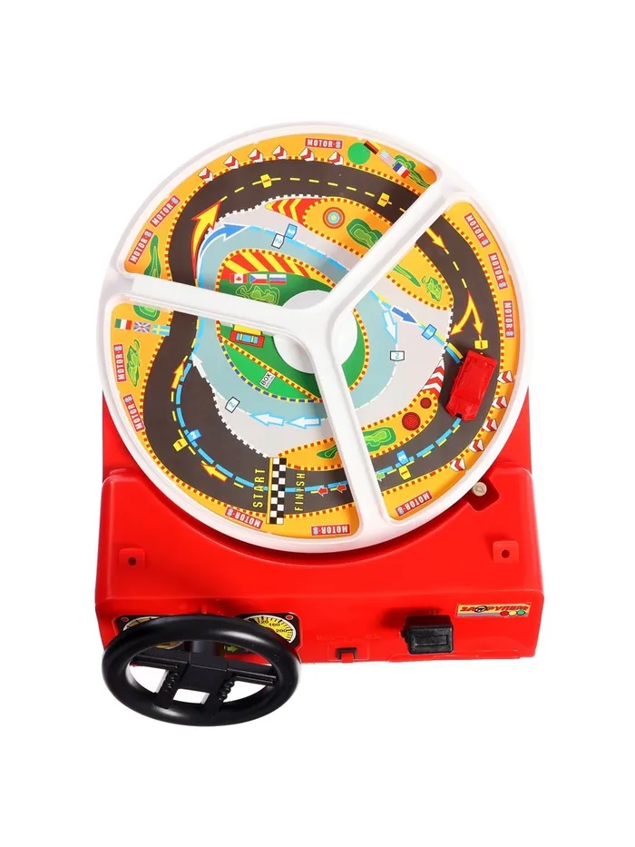 Установите на игровое поле машинку, поверните ключ зажигания, выберите одну из 3 скоростей на коробке переключения передач и начинайте движение. После старта гоночная трасса начнёт крутиться по часовой стрелке, а вам необходимо её придерживаться. Питание игры осуществляется с помощью 2 или 3 элементов типа C (R26.2).