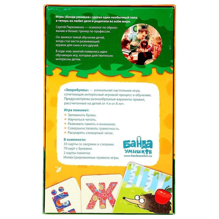 На поляне собрались лесные жители. Они не знают, как называть друг друга и растения, которыми питаются, — внезапно потерялись все буквы. Отыщите вместе с детьми пропажу в настольной игре «Зверобуквы» и верните спокойствие в лес.