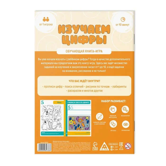 Настольная книга-игра «Изучаем цифры», 62 страницы, 5+ — Характеристики