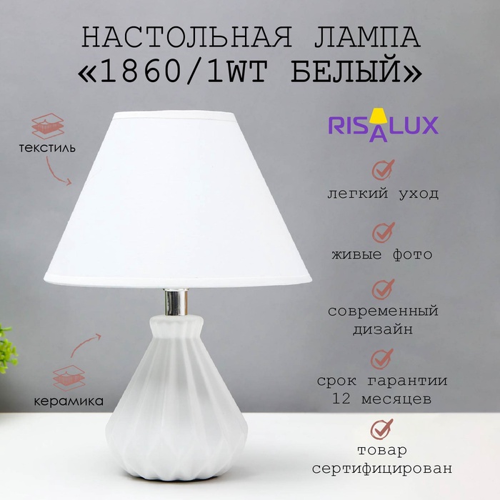 Настольная лампа 16141/1 E27 40 Вт бело-золотой 20×20×44 см RISALUX — Характеристики