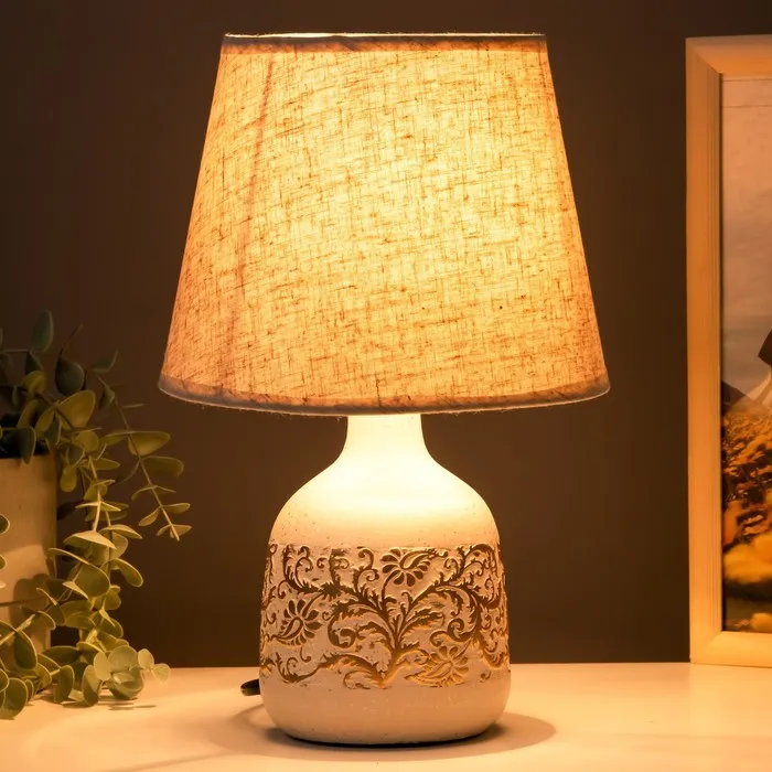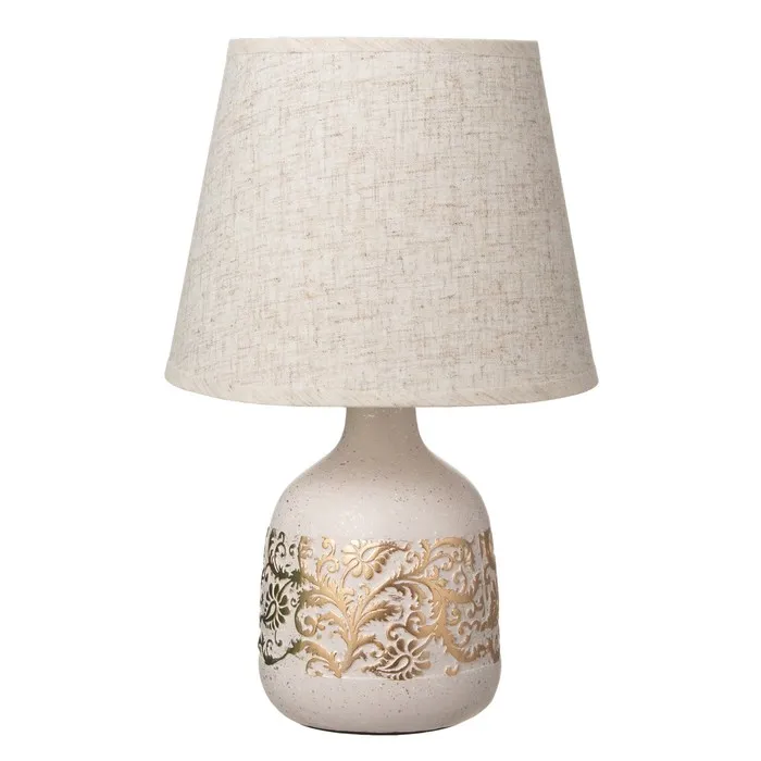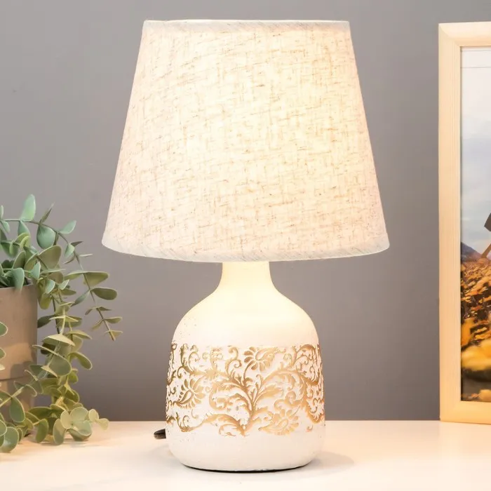 - Керамическое основание в классическом белом и золотом цветах придает лампе элегантный вид.