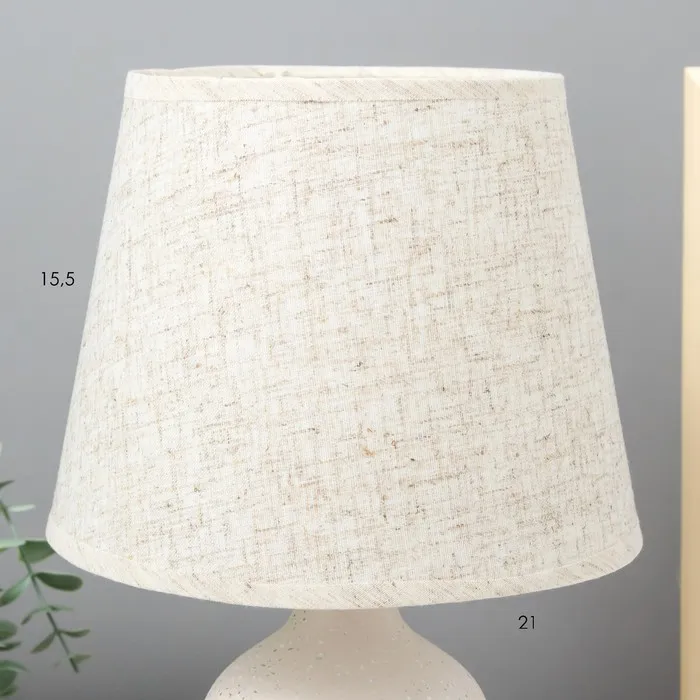 - Текстильный абажур в бежевых тонах направляет свет вверх, создавая теплую атмосферу.