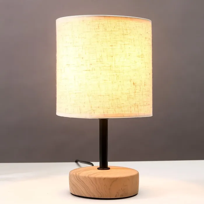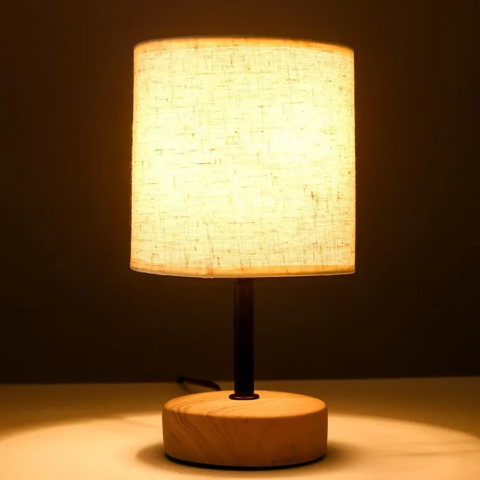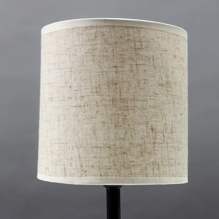 - Текстильный абажур в светлых тонах создает мягкое рассеянное освещение.