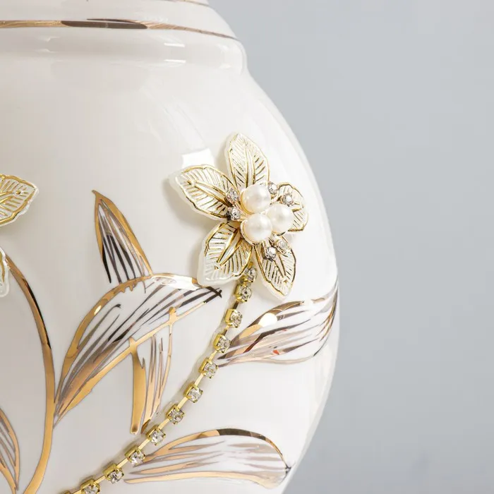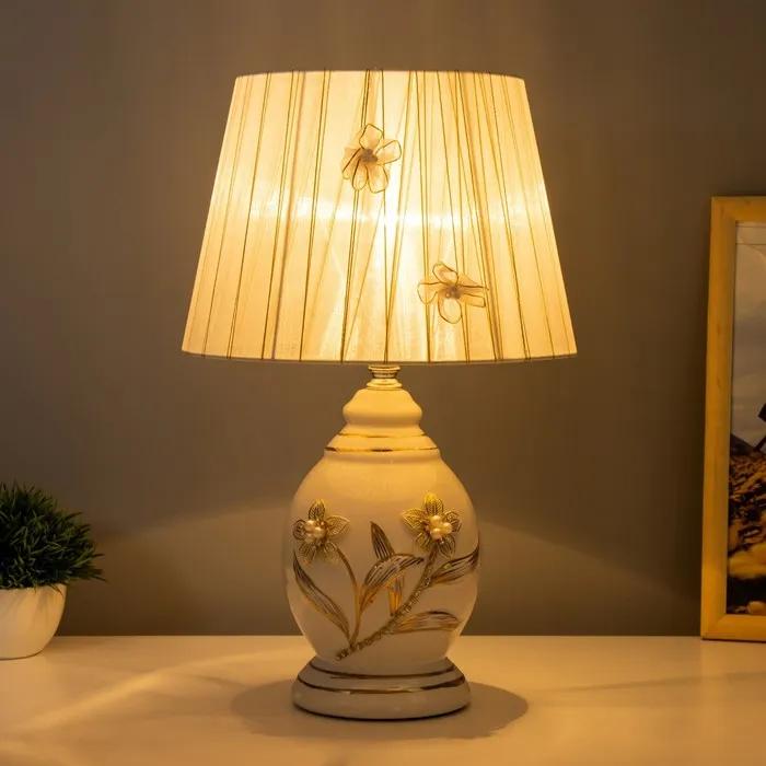 - Керамическое основание в белом и золотом цветах придаёт лампе изысканный вид.