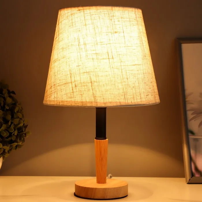 - Текстильный абажур в бежевых тонах создает мягкое рассеянное освещение.