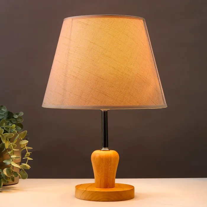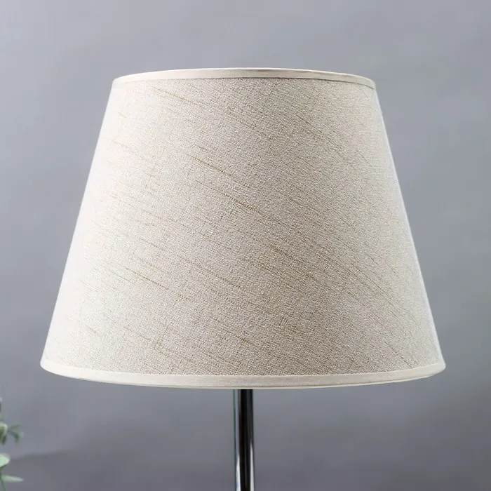 - Текстильный абажур в бежевых тонах обеспечивает рассеянное освещение.