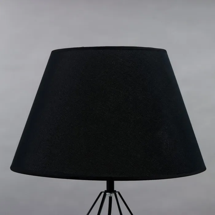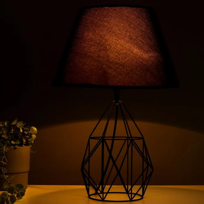 - Текстильный абажур в темных тонах обеспечивает комфортное рассеянное освещение.