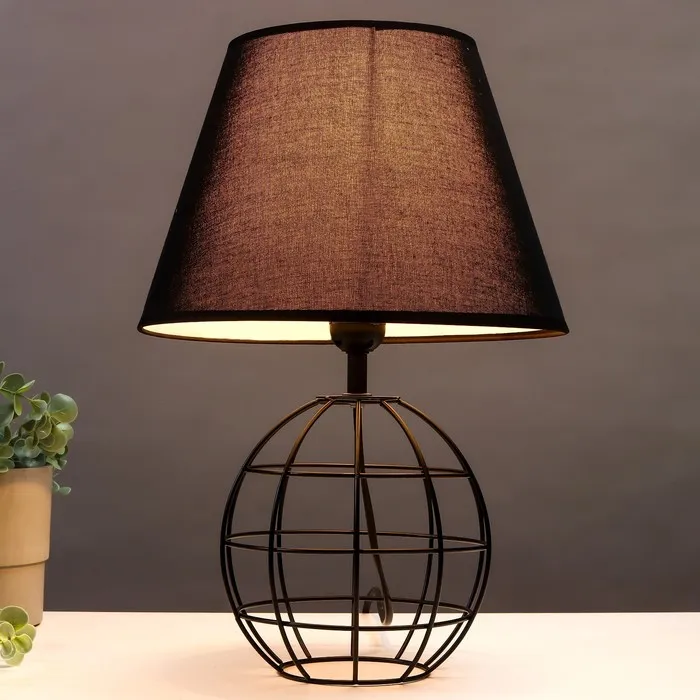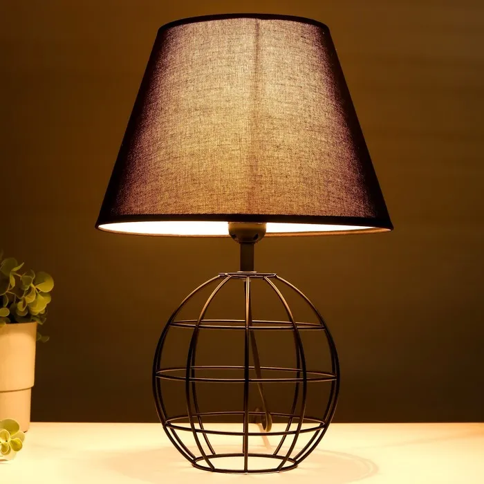 - Текстильный абажур в темных тонах обеспечивает комфортное рассеянное освещение.