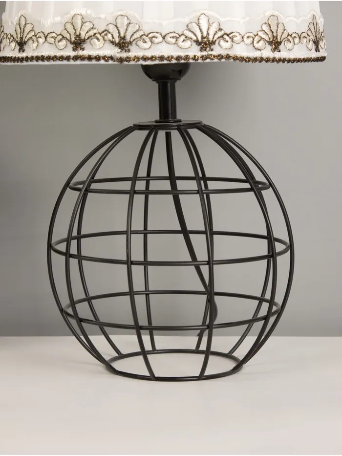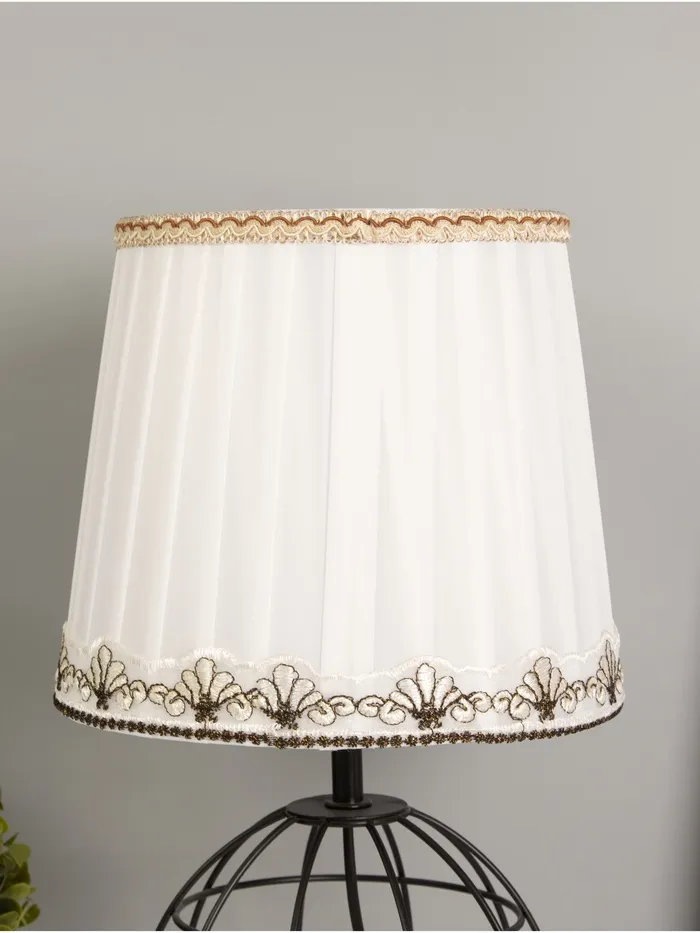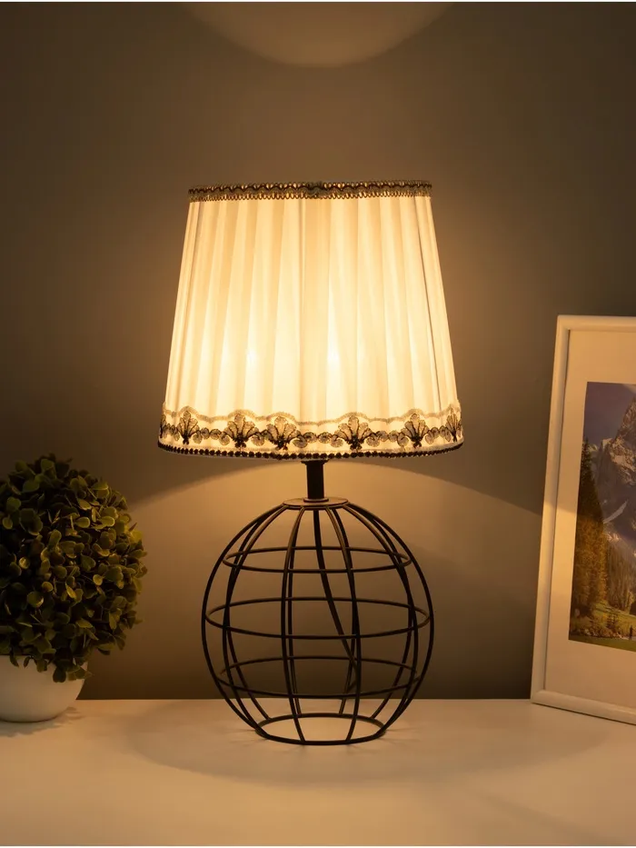 - Металлическое основание обеспечивает надежность, а абажур из текстиля и пластика создает мягкое и комфортное освещение.