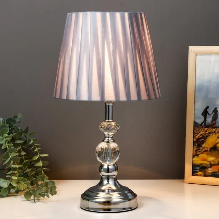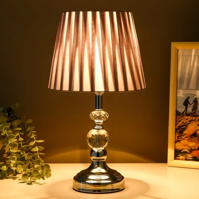 Элегантная настольная лампа с хромированным основанием станет стильным дополнением вашего интерьера. С высотой 35 см и компактными размерами 22х22 см, она отлично впишется в любое пространство, создавая атмосферу уюта и комфорта. Трапециевидный текстильный абажур в светлых тонах направляет свет вверх, обеспечивая мягкое и приятное освещение.