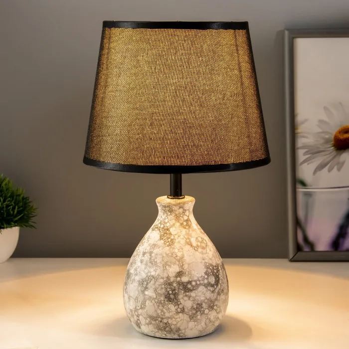 Эта настольная лампа станет стильным акцентом в вашем интерьере, придавая ему современный вид. Серое керамическое основание и трапециевидный абажур в тёмных тонах создают атмосферу уюта и спокойствия, идеально подходящую для чтения или отдыха.