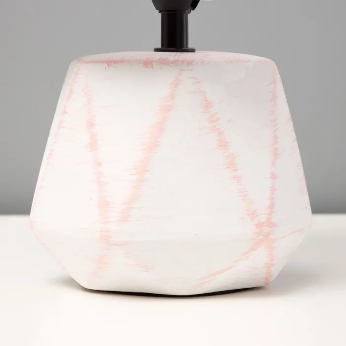 Эта настольная лампа добавит изысканности и уюта в ваш дом. Сочетание белого и розового цветов в керамическом основании и текстильном абажуре создает гармоничное освещение, подходящее для различных интерьеров, от детской комнаты до уютной гостиной.