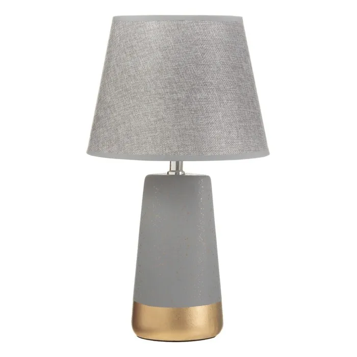 Эта настольная лампа с современным дизайном станет стильным акцентом в вашем интерьере. Серо-золотое основание и серый текстильный абажур создают гармоничное сочетание, которое отлично впишется в любой стиль — от классического до современного. Она идеально подходит для освещения рабочего места или создания уютного уголка для чтения.
