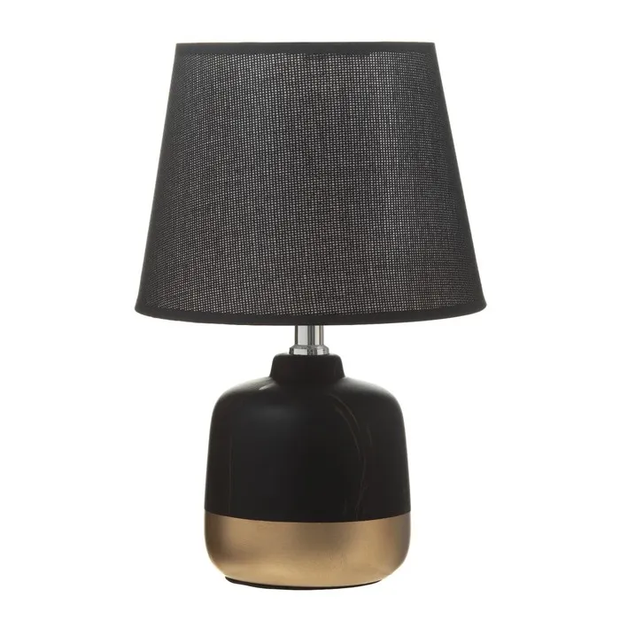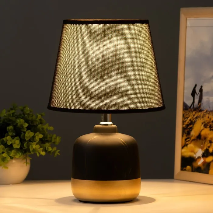 Эта настольная лампа станет стильным акцентом в вашем интерьере, сочетая элегантность и современность. Черно-золотое керамическое основание и конусный текстильный абажур создают атмосферу уюта и комфорта, идеально подходящую для чтения или расслабления.