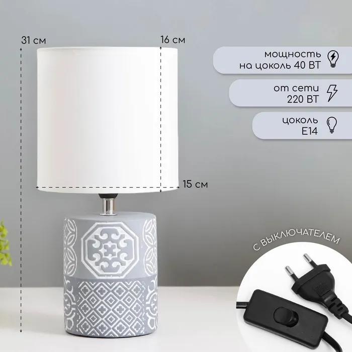 Эта настольная лампа станет стильным дополнением вашего дома, сочетая практичность и элегантность. Серое керамическое основание и цилиндрический текстильный абажур создают мягкое и уютное освещение, идеально подходящее для чтения или отдыха.