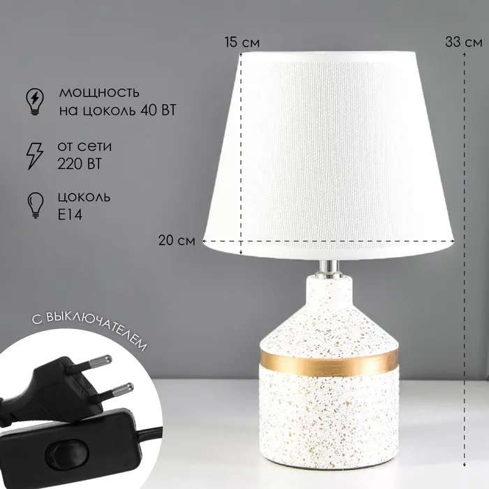 Настольная лампа «Аквилина» Е14 40 Вт бело-золотой 20×20×33 см RISALUX — Характеристики
