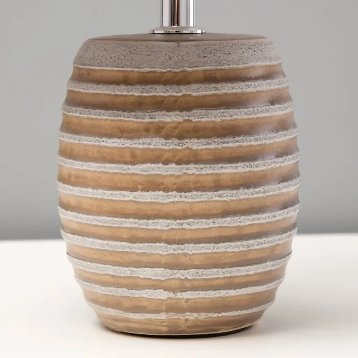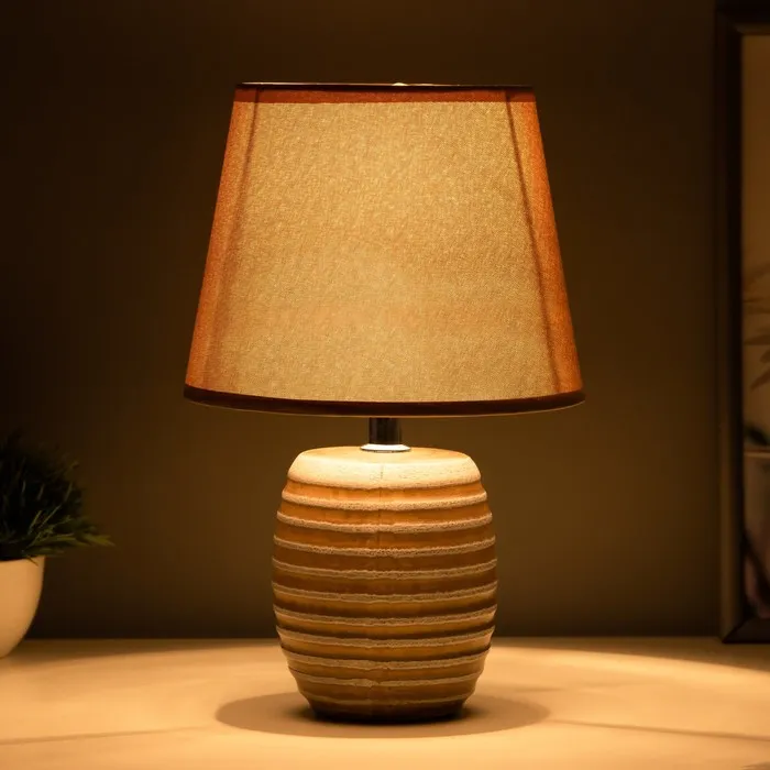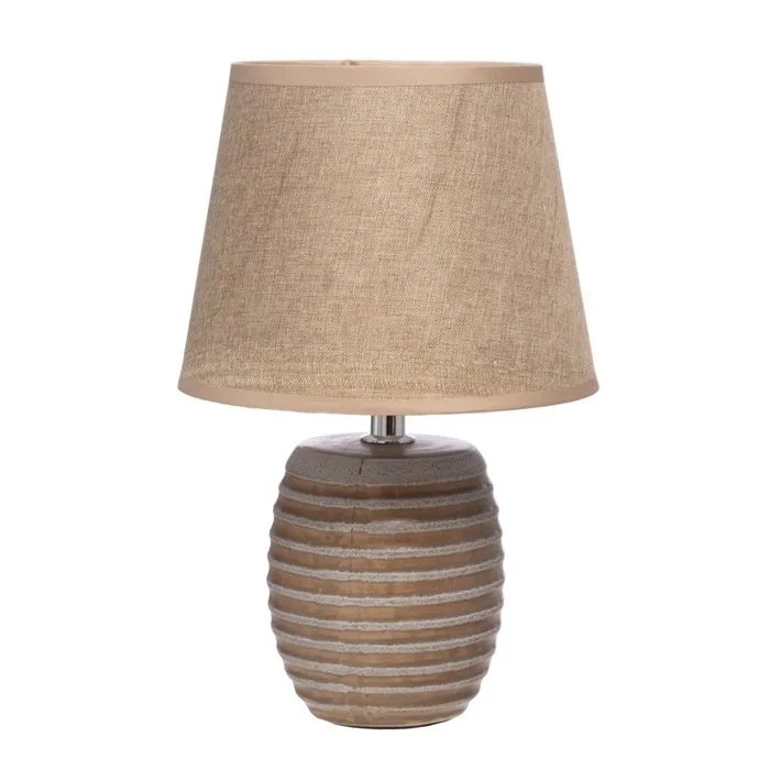 Эта настольная лампа станет прекрасным дополнением вашего интерьера, сочетая стильный дизайн и практичность. Серо-коричневое керамическое основание и текстильный абажур в теплых тонах создают уютное освещение, идеально подходящее для работы и отдыха. Компактные размеры делают её идеальным выбором для любого стола или тумбочки.