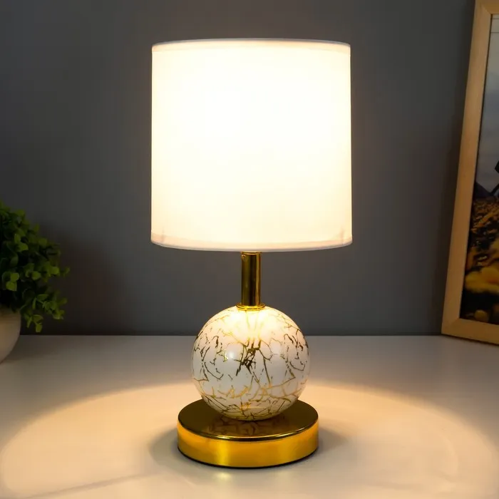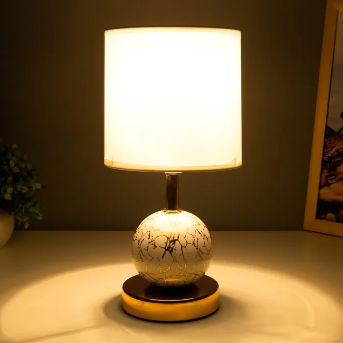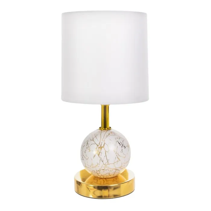 Эта настольная лампа станет стильным акцентом в вашем интерьере, добавляя изысканности и уюта. С керамическим основанием золотого и белого цвета и цилиндрическим текстильным абажуром, она прекрасно впишется в любой интерьер, будь то классика или современный стиль.