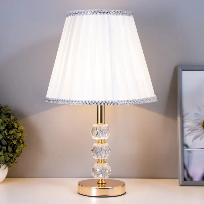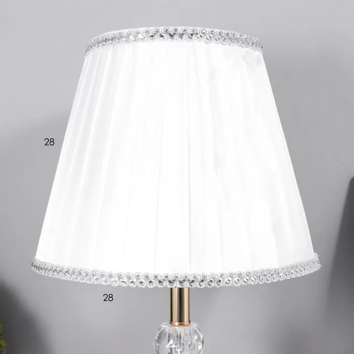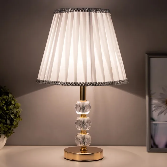 - Текстильный абажур светлых тонов мягко рассеивает свет, обеспечивая комфортное освещение.