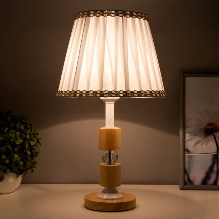 - Текстильный абажур в светлых тонах создает мягкое и комфортное освещение.