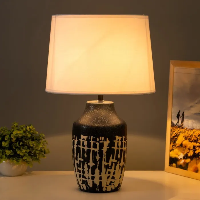 - Текстильный абажур создает мягкий свет, который не напрягает глаза.
