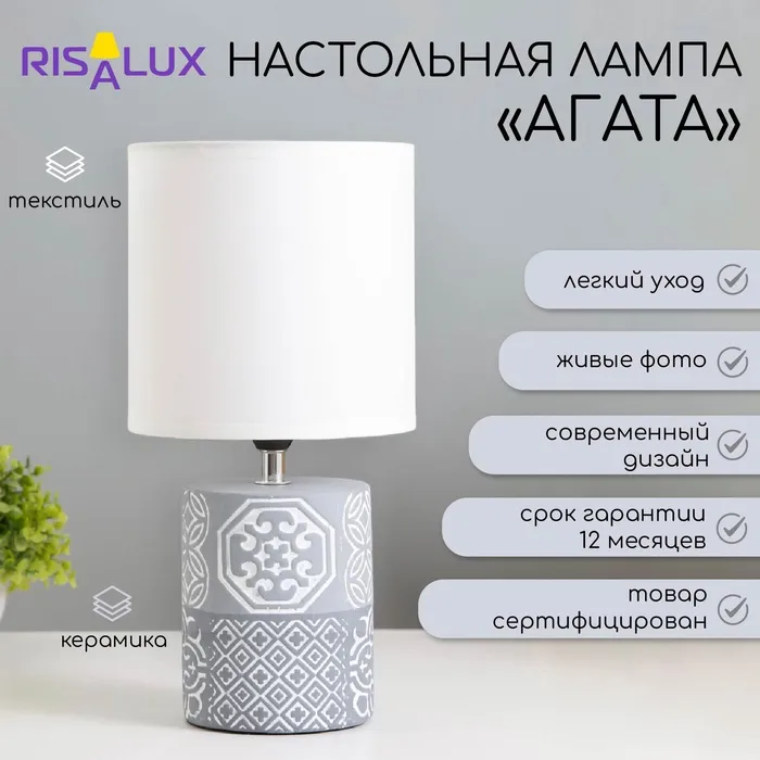 Настольная лампа "Ассанти" Е14 40Вт бело-серый RISALUX — Характеристики