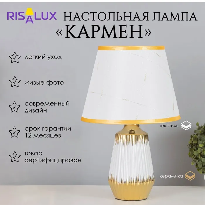 Настольная лампа «Азалия» 1×40 Вт Е27 220 В серебро 20×20×40 см RISALUX — Характеристики