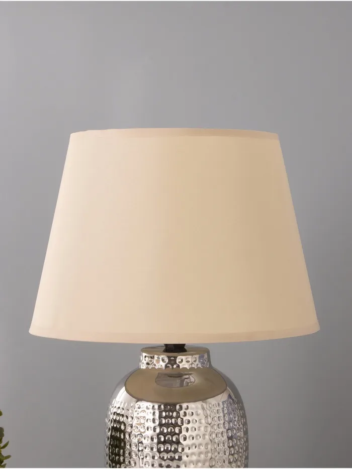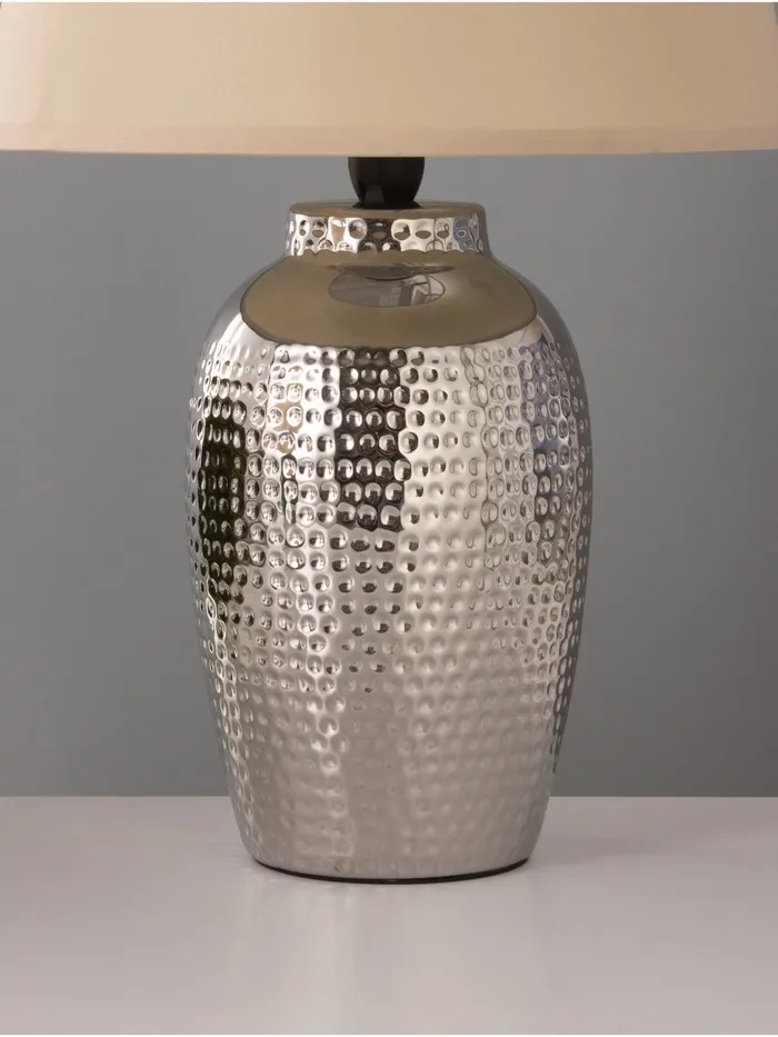 - Современный дизайн: Керамическое основание с хромированным покрытием в сочетании с бежевым абажуром придает светильнику изысканный вид, что позволяет ему легко вписаться в различные интерьеры.